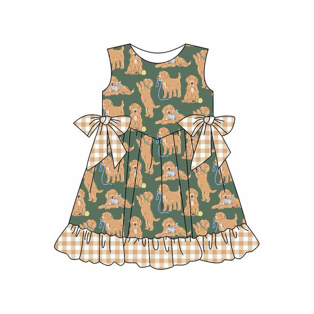 Sleeveless khaki plaid ruffle dog baby girls summer dresses
