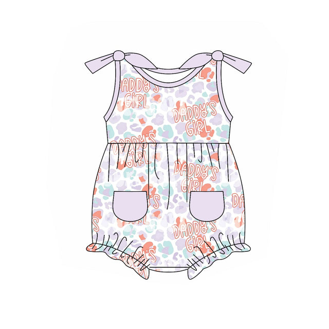 Sleeveless lavender leopard daddy's girl baby romper - 0-3M is backordered and will ship as soon as it is back in stock.