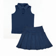 Sleeveless navy polo shirt pleated skirt girls activewear set