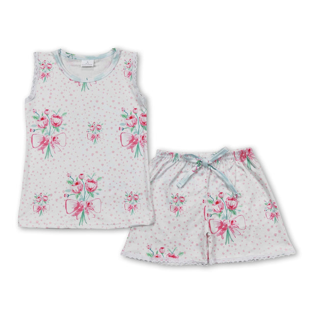 Sleeveless pink floral baby girls summer outfits - 3-6M is backordered and will ship as soon as it is back in stock.