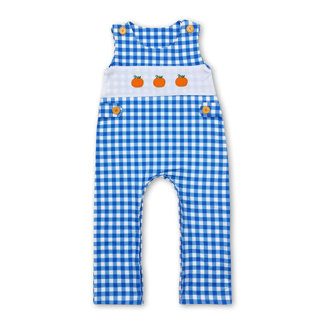 Sleeveless plaid pumpkin baby boy fall romper - 0-3M is backordered and will ship as soon as it is back in stock.