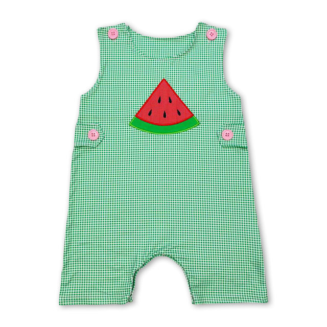 Sleeveless plaid watermelon baby boy summer romper - 0-3M is backordered and will ship as soon as it is back in stock.