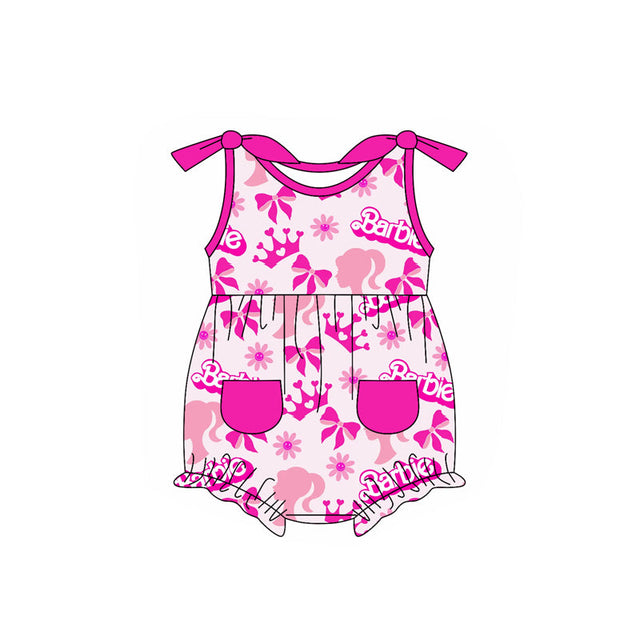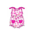 Sleeveless hot pink floral bow party baby girls romper - 0-3M is backordered and will ship as soon as it is back in stock.