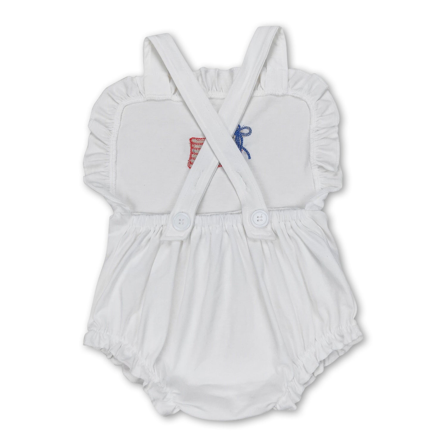 White strap flag baby girls 4th of july romper - 0-3M is backordered and will ship as soon as it is back in stock.